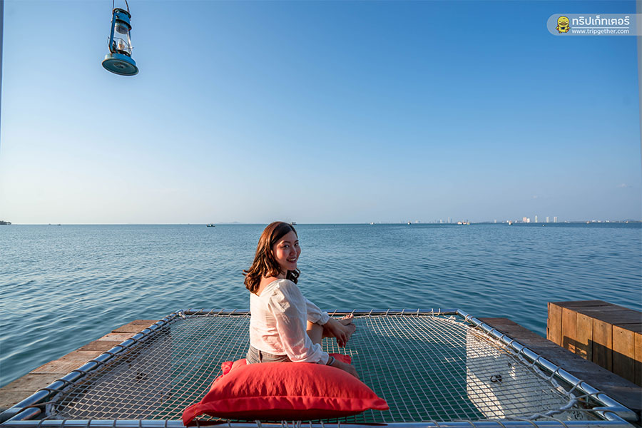 มุมถ่ายรูปคู่กับเปลตาข่ายสุดชิลล์กลางทะเล