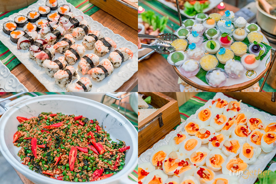 ที่เดอะการ์เร็ต อาหารเช้าเป็นบุฟเฟต์นานาชาติ มีเมนูให้เลือกมากมาย จะกินเบาๆ ก็มีขนมปัง แซนด์วิช ครัวซองต์ ซูชิ หรืออยากกินแบบจัดเต็ม ก็มีข้าวต้ม กะเพราหมูสับ ไก่ทอด อยากได้มื้อเช้าแบบไหน เลือกได้เลย