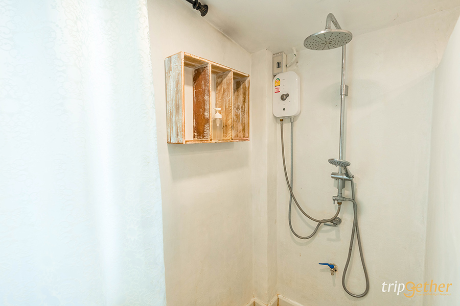 ห้องน้ำของที่นี่ มีเครื่องทำน้ำอุ่นให้ทุกห้อง พร้อมสิ่งอำนวยความสะดวกต่างๆ