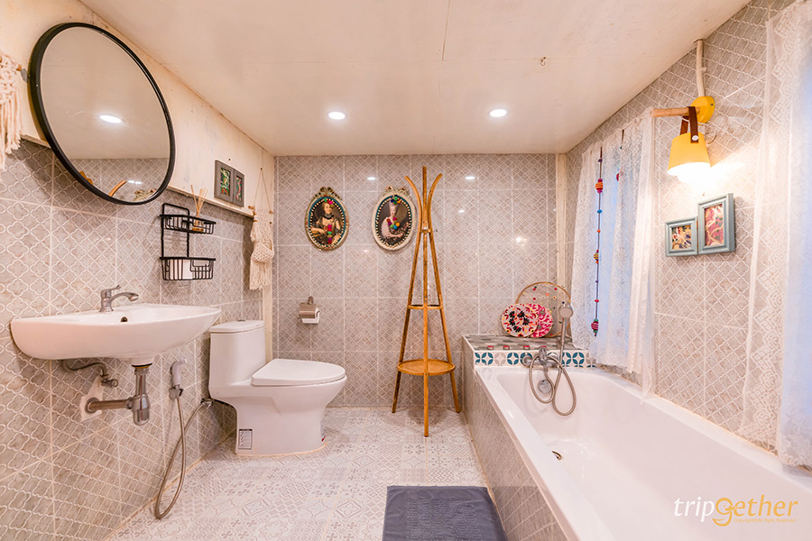 ห้องน้ำมีการแบ่งสัดส่วนกันอย่างชัดเจน โดยมีโซนเรนชาวเวอร์ ห้องน้ำ และห้องแต่งตัว