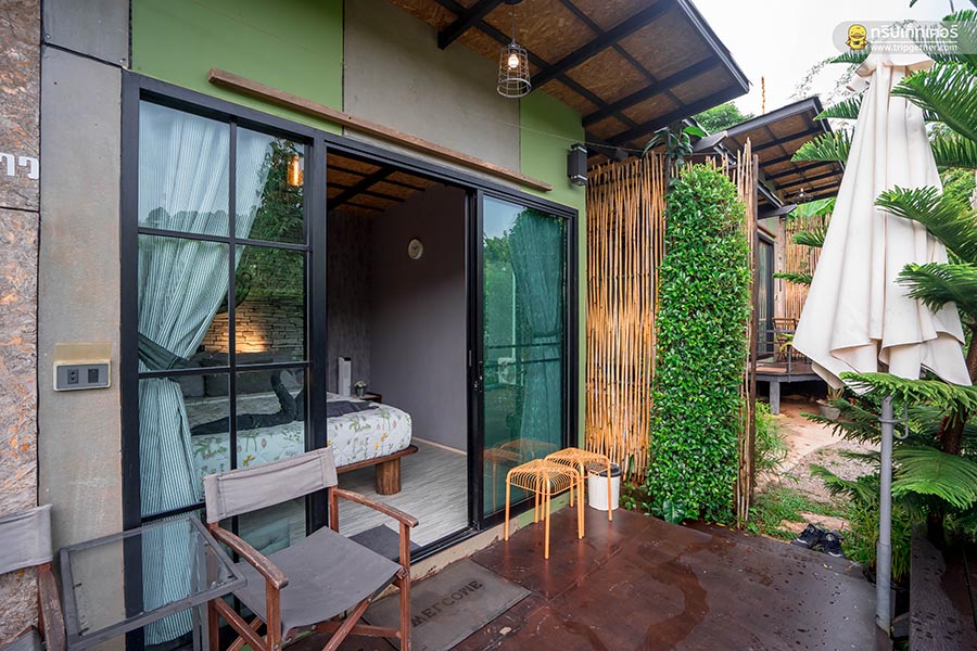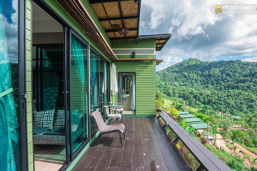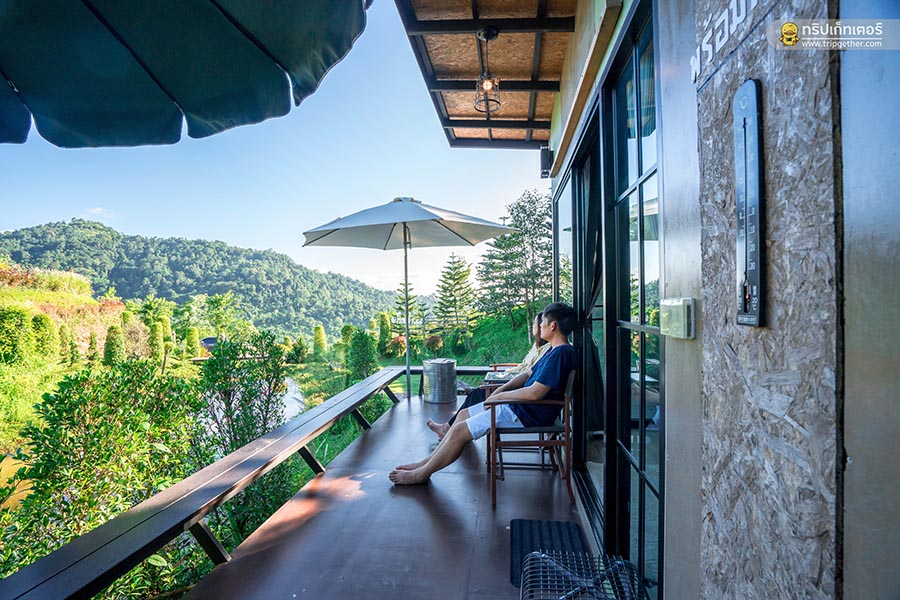 ด้านหน้าห้องมีระเบียงให้นั่งชมวิวและทำกิจกรรมร่วมกัน