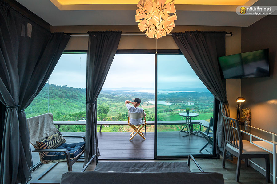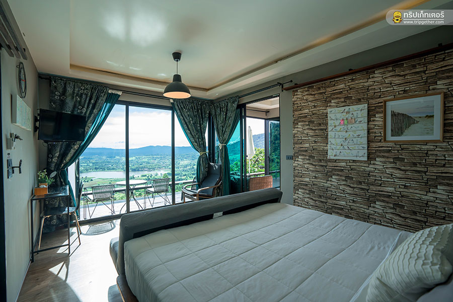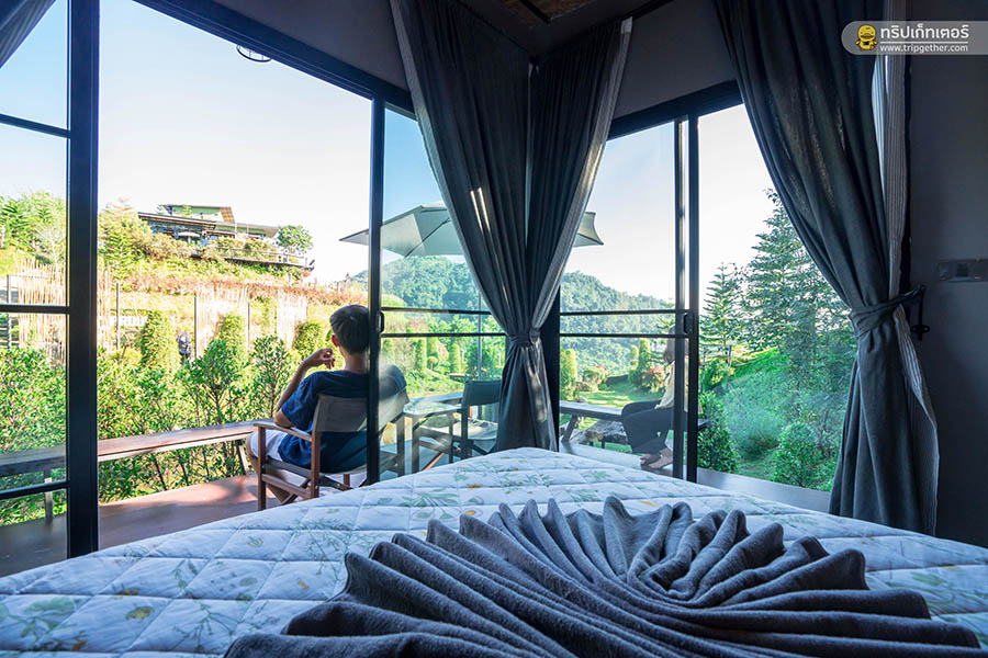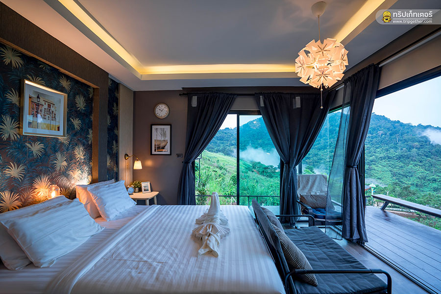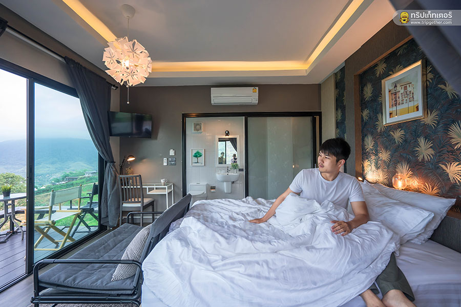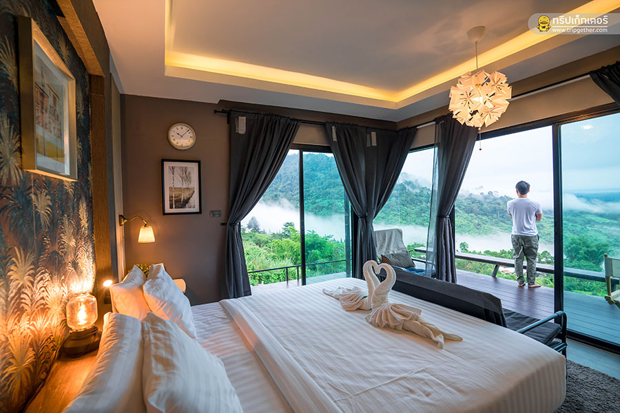 พร้อมความพิเศษอย่างการออกแบบประตูกระจกบานใหญ่ที่สามารถมองเห็นวิวทะเลหมอกและอ่างเก็บน้ำรัตนัยได้จากบนเตียง