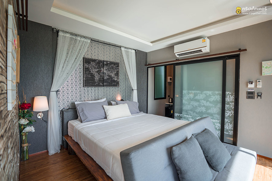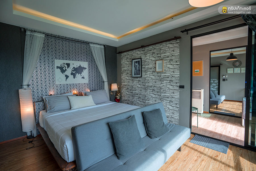 บรรยากาศภายในห้องนอน น่าพักผ่อนและครบครันไปด้วยสิ่งอำนวยความสะดวก