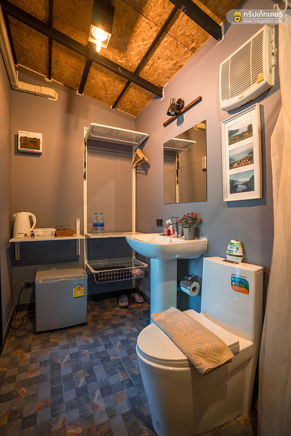 ภายในห้องน้ำมีขนาดกระทัด มาพร้อมสุขภัณฑ์ที่สะอาดสะอ้าน