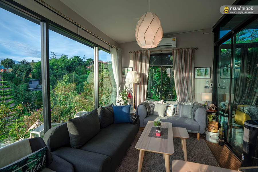 ถึงแม้ภายนอกจะดูเรียบง่ายแต่เมื่อเข้ามาภายในจะเซอร์ไพรส์ด้วยขนาดพื้นที่กว้างขวาง ฝ้าเพดานสูงที่มีความหรูหราและช่วยเพิ่มสเปซในห้องให้น่าพักผ่อนมากยิ่งขึ้น เฟอร์นิเจอร์และของตกแต่งทั้งหมดถูกคัดสรรมาเป็นอย่างดีจากเจ้าของที่พัก เพื่อเพิ่มความมั่นใจในคุณภาพการพักผ่อนให้แก่ผู้เข้าพัก อีกทั้งยังครบครันไปด้วยสิ่งอำนวยความสะดวกไม่แพ้รีสอร์ทระดับ 5 ดาว