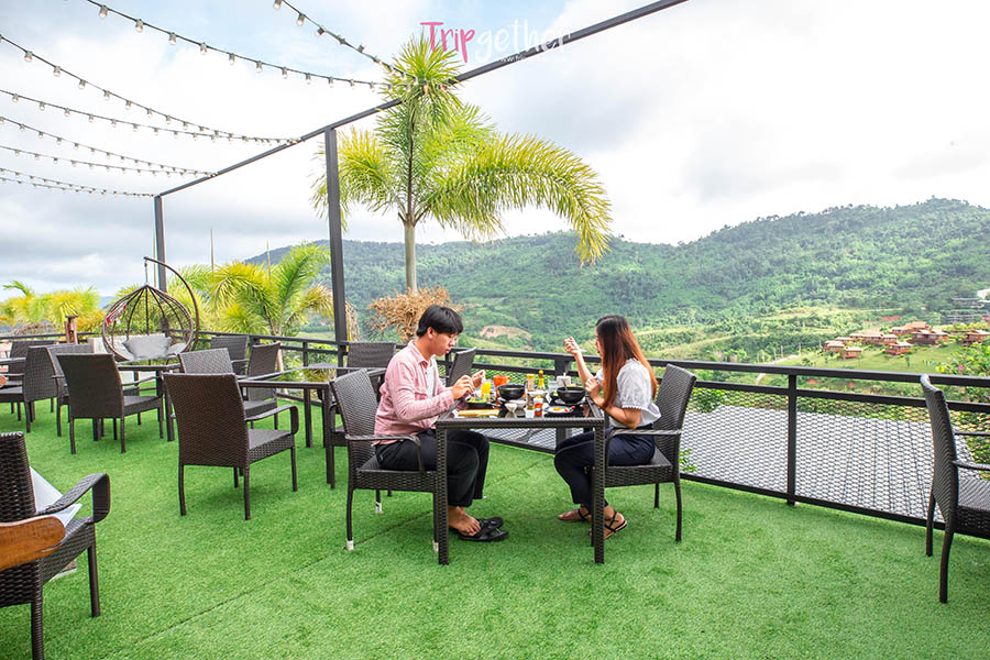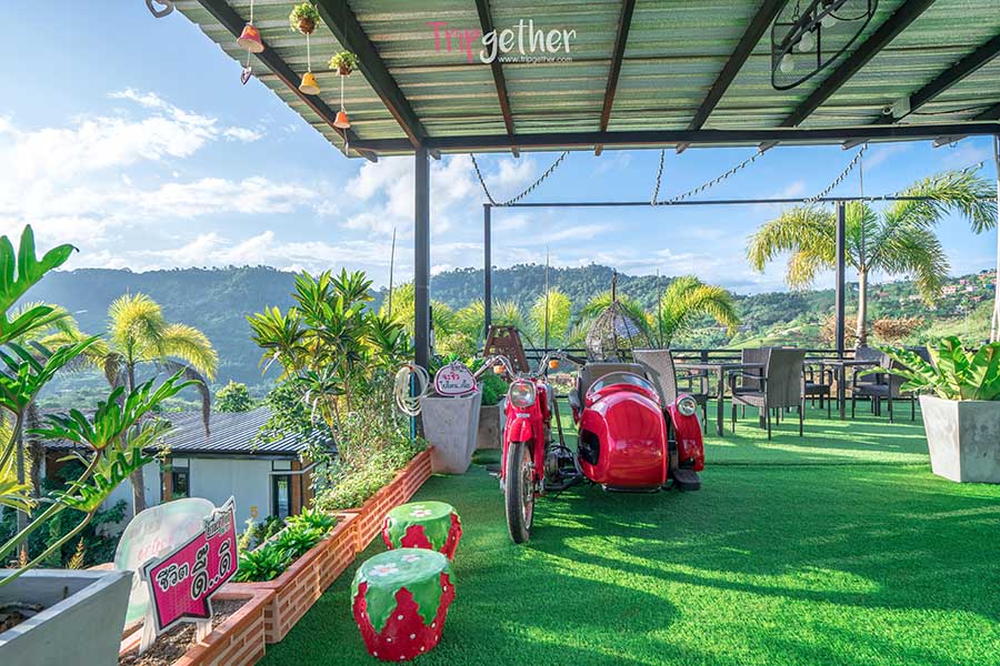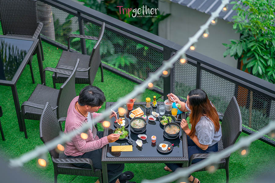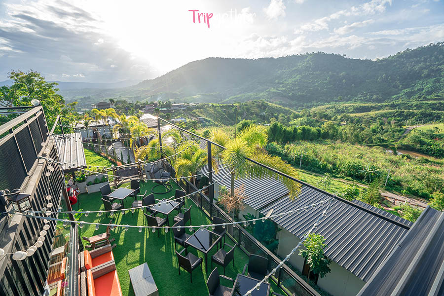 ด้านบนห้องอาหารก็มีชั้นดาดฟ้าให้นั่งชมวิว และถ่ายรูปเก๋ๆ กันด้วย