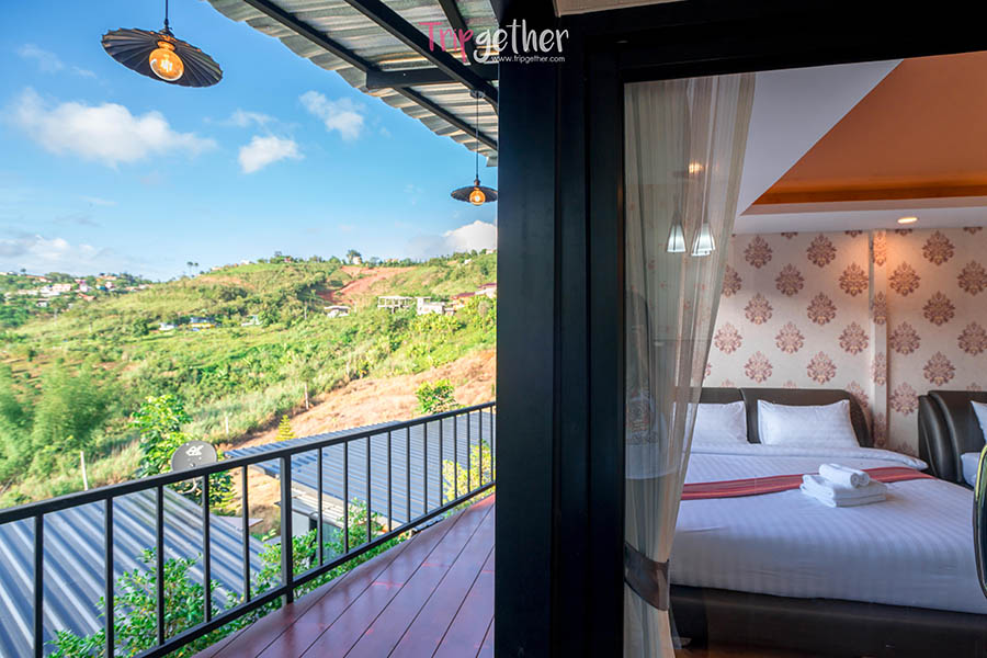 มีระเบียงส่วนตัว สามารถชมวิวพระอาทิตย์ตกและทะเลหมอกยามเช้าได้เช่นกัน