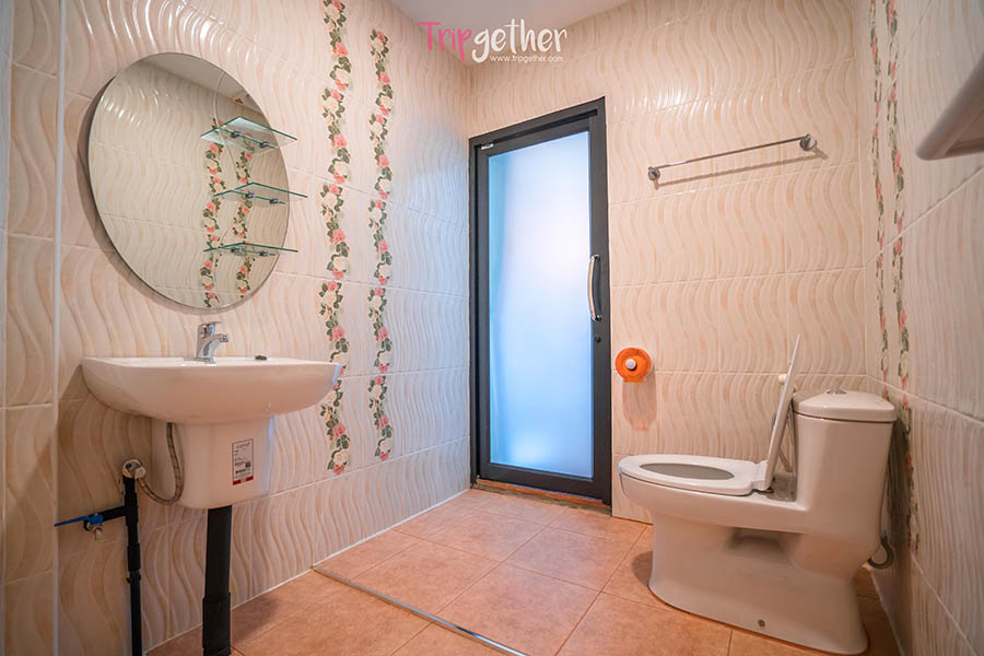มุมห้องน้ำก็กว้างขวางแบ่งโซนเปียกและโซนแห้งได้อย่างดีเยี่ยม สิ่งอำนวยความสะดวกครบครัน ทั้งแชมพู และครีมอาบน้ำ