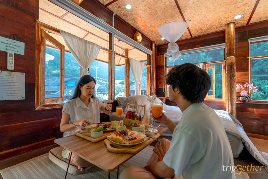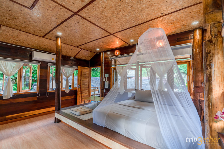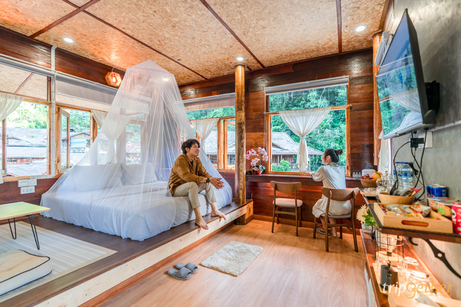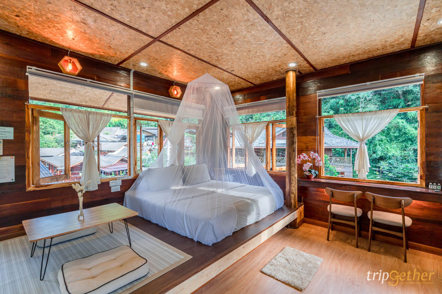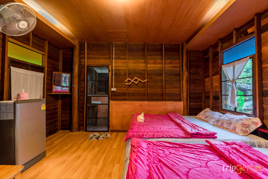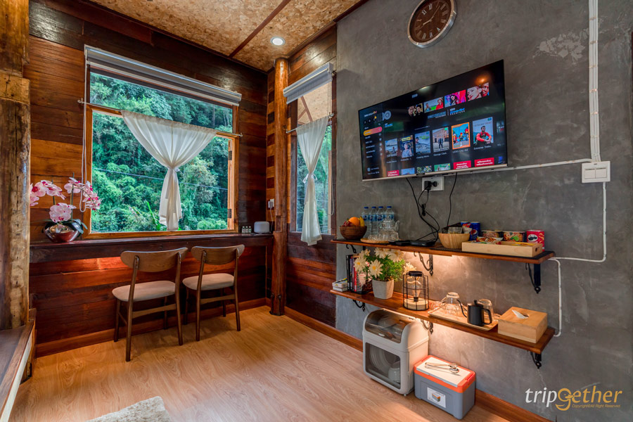 ภายในมีเครื่องใช้ครบครันและสะดวกสบาย ไม่ว่าจะเป็นเตียงที่นุ่ม ผ้าห่มที่หนาอุ่น ห้องน้ำที่กว้างสบาย และที่สำคัญจะมีเสียงดนตรีจากธรรมชาตินั่นก็คือเสียงของสายน้ำ คลอเบาๆ และด้วยความที่อยู่ติดลำธารเลยทำให้อากาศเย็นสบายกำลังดีเหมาะกับการพักผ่อนสุดๆ