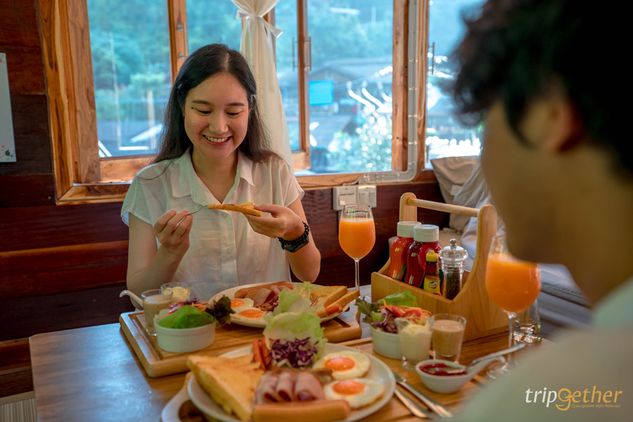 เช้านี้มีอาหารสุดอร่อยกับวิวแบบ 360 องศา สุนทรีย์ในการกินมากๆ คุ้มแล้วกับการพักผ่อนที่แม่กำปอง