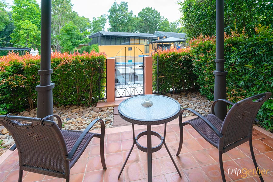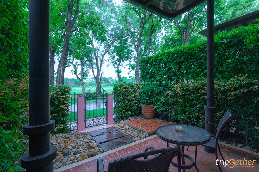 มุมระเบียงของห้องสามารถออกมานั่งเล่นดูวิวของสนามกอล์ฟและดื่มด่ำบรรยากาศของที่พัก