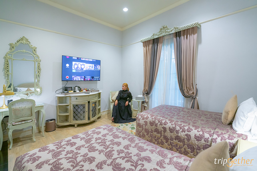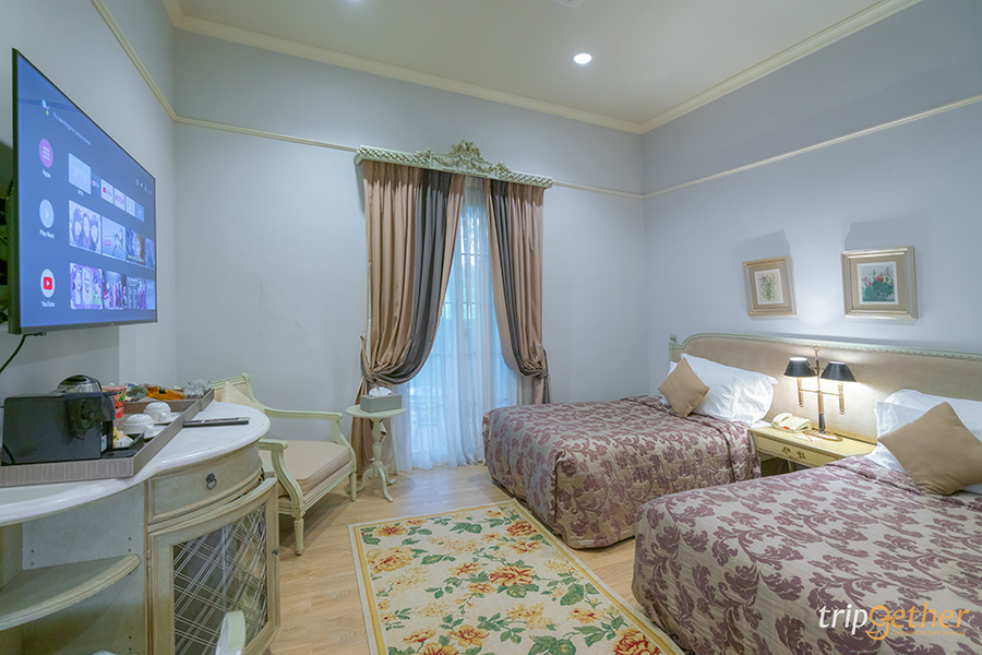 ส่วนห้องสุดท้ายที่จะพาทุกคนตามไปดูกันก็คือห้อง Deluxe ห้องนี้จะเป็นห้องที่สามารถมองเห็นวิวสนามกอล์ฟได้จากระเบียงของห้อง เมื่อเราเปิดประตูเข้าไปจะเจอกับเตียงเดี่ยวสองเตียง มุมห้องจะจัดวางโซฟาไว้สำหรับนั่งเล่น พร้อมกับโต๊ะเครื่องแป้งหรือจะเอาไว้นั่งทำงานก็ได้เช่นกัน นอกจากนี้ระเบียงที่สามารถมองวิวสนามกอล์ฟได้นั้นยังสามารถเปิดออกไปนั่งเล่นได้อีกด้วยเพราะมีการจัดวางโต๊ะและเก้าอี้เอาไว้สำหรับนั่งสูดอากาศดีๆ มองวิวสวยๆ