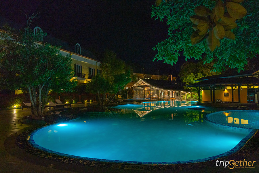 บรรยากาศช่วงกลางคืนของที่รีสอร์ตโรแมนติกมากๆ อากาศเย็นสบาย เดินเล่นก่อนเข้าห้องพักชิลล์ๆ