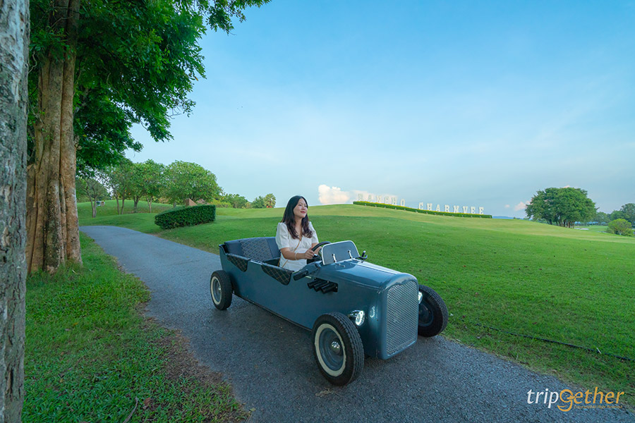 กิจกรรมต่อมาที่เราอยากแนะนำเลยคือการขับรถคลาสสิกชมวิวทิวทัศน์รอบรีสอร์ต สัมผัสกับบรรยากาศสวยๆ ธรรมชาติดีๆ สูดอากาศบริสุทธิ์ บอกเลยว่าดีไม่ไหว แถมยังได้รูปสวยๆ คู่กับรถคลาสสิกที่หาที่ไหนไม่ได้เลยเพราะที่นี่สั่งทำพิเศษ รถคันเล็กน่ารักแถมขับง่ายมากด้วย ว่าแล้วก็ขับเล่นสักหน่อย กิจกรรมขับรถคลาสสิกคาร์ 600 บาท/30 นาที ติดต่อกับเจ้าหน้าที่ที่ดูแลได้เลย