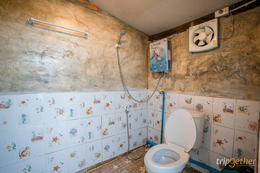 ส่วนห้องน้ำส่วนตัวจะอยู่ด้านข้างเต็นท์ที่พัก มีเครื่องทำน้ำอุ่นให้พร้อม ไม่ต้องกลัวหนาวกันเลย