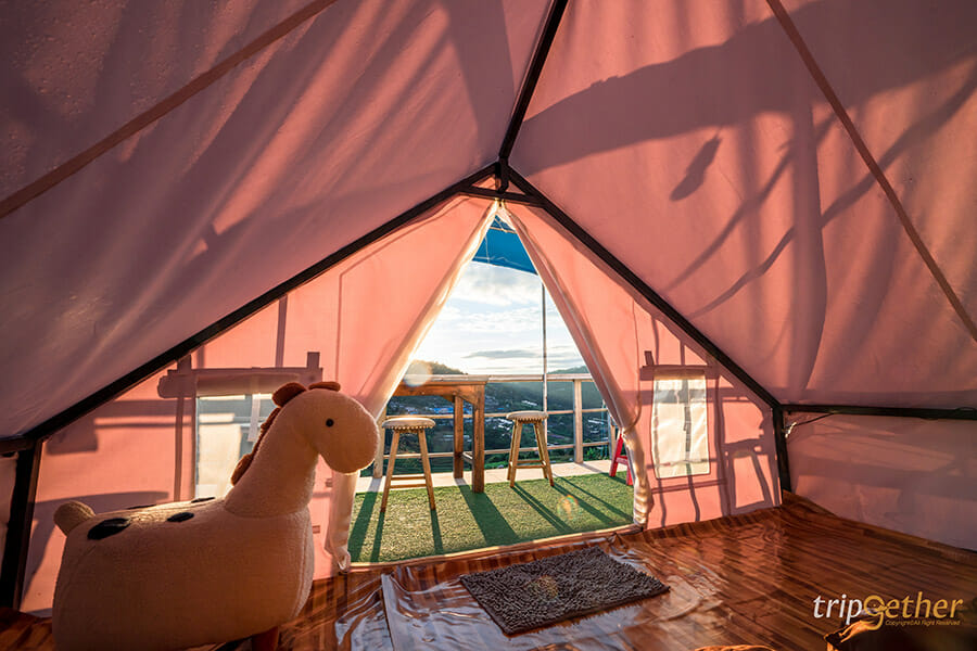 จากมุมนี้แค่เปิดเต็นท์ก็สามารถมองเห็นแสงสวยๆ ของพระอาทิตย์ขึ้นในตอนเช้าด้วย
