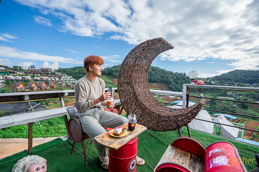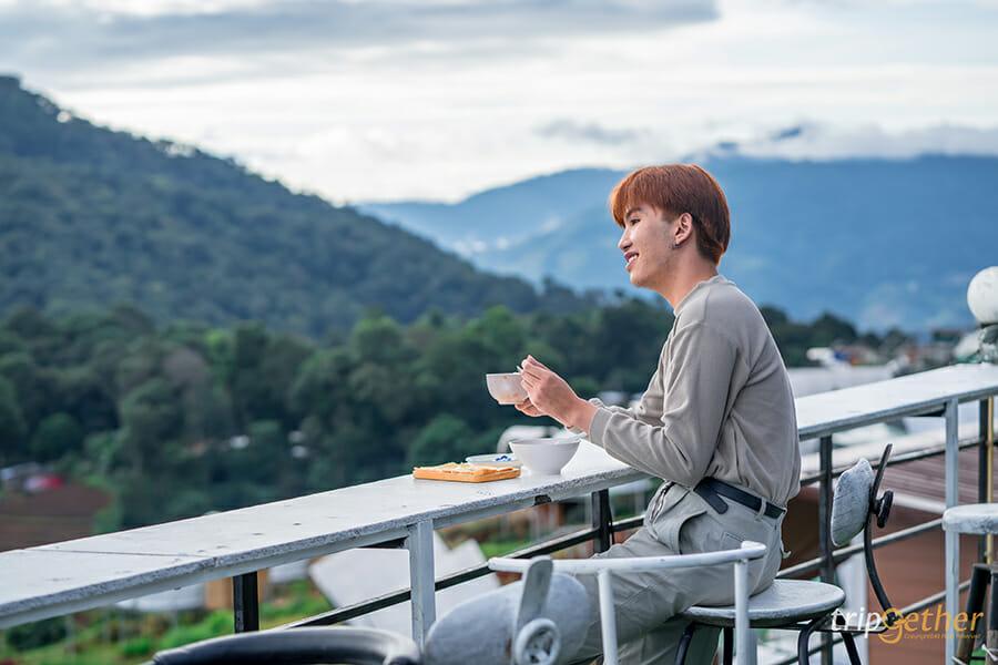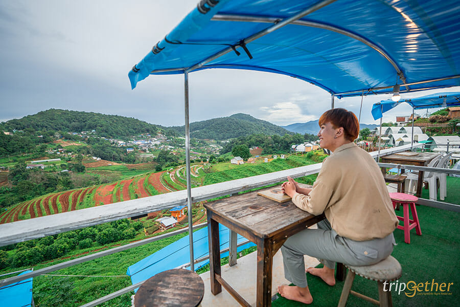 นอกจากนี้ไร่มีนา ม่อนแจ่มยังมีคาเฟ่สุดชิคที่ชื่อว่า ไร่มีนา กาแฟโสด ที่ขอบอกเลยว่าวิวปังสุดๆ ตัวคาเฟ่จะอยู่ด้านบนสุดของที่พัก มีเมนูมากมายให้เลือกไม่ว่าจะเป็นกาแฟ เบเกอรี่ และของทานเล่น