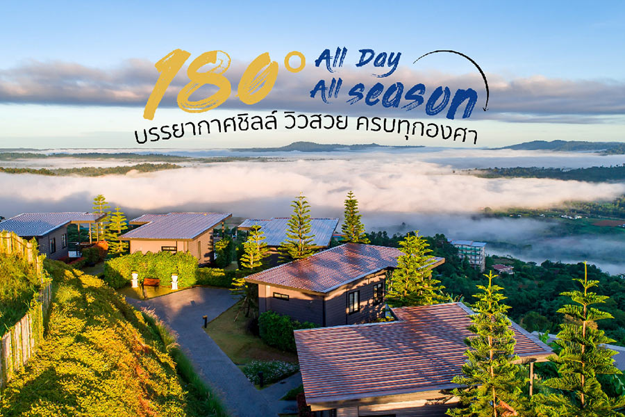 180 All Day All Season รีสอร์ทเรียบหรู เงียบสงบ ตั้งอยู่ริมหน้าผา อ.เขาค้อ จ.เพชรบูรณ์ ที่รายล้อมไปด้วยขุนเขาและวิวอำเภอเขาค้อที่คุณสามารถมองเห็นได้แบบ 180 องศา สมชื่อ “180 All Day All Season” นอกจากนั้นคุณยังจะได้เชยชมกับทะเลหมอกได้จากระเบียงหน้าห้องพักในบรรยากาศเป็นส่วนตั๊วส่วนตัวในแบบฟีลกู๊ด