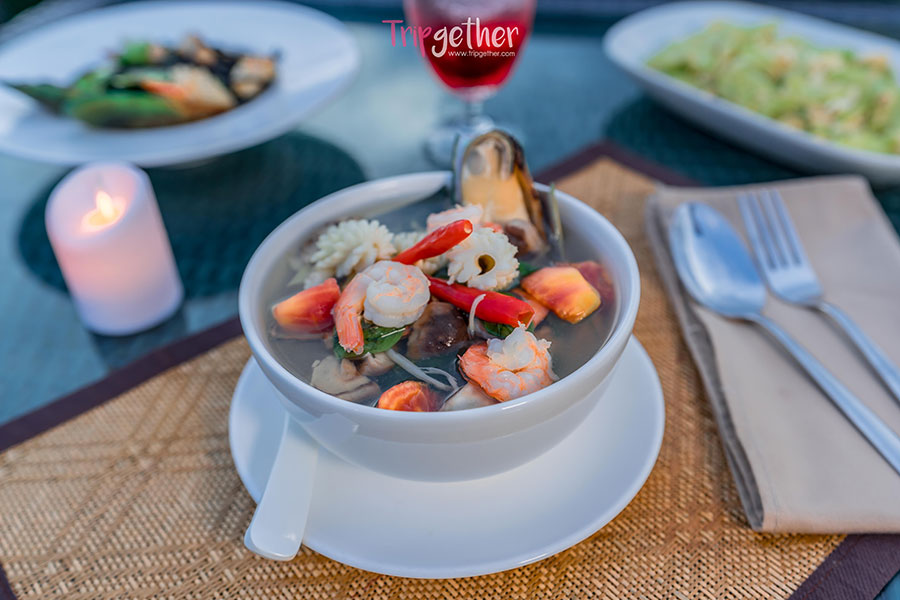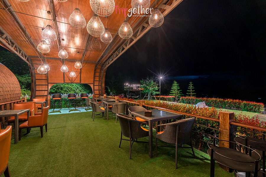 มีโซนให้นั่งทั้งอินดอร์และเอาท์ดอร์นั่งรับประทานอาหารค่ำพร้อมชมพระอาทิตย์ตก โรแมนติกดีทีเดียว