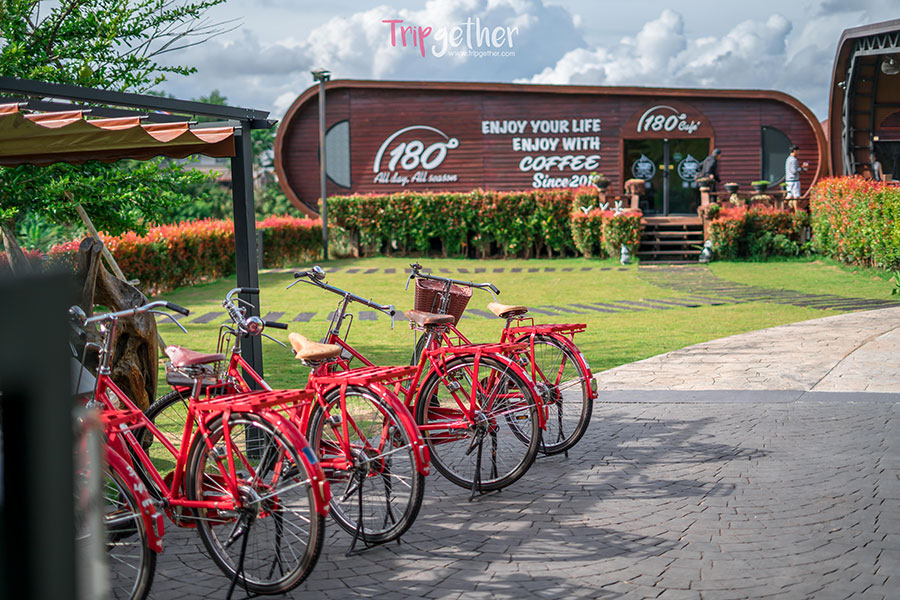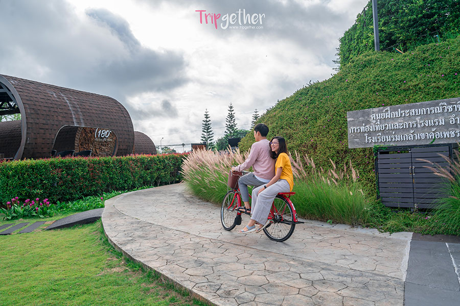 ที่นี่มีจักรยานให้ปั่นเล่นภายในบริเวณรีสอร์ทฟรีด้วย