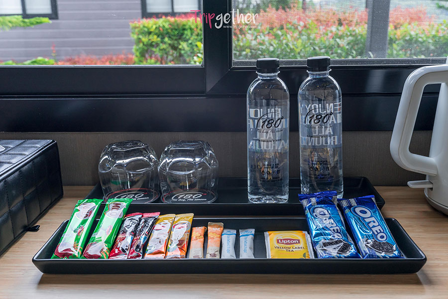 เมื่อเดินทางมาถึงที่ 180 All Day All Season เช็คอินเข้าห้องพักที่ล็อบบี้ มีพนักงานมาต้อนรับอย่างอบอุ่น พร้อมเสิร์ฟเวลคัมดริ้ง และมีบริการรถกอล์ฟรับ-ส่งจากล็อบบี้ไปยังบ้านพักด้วย