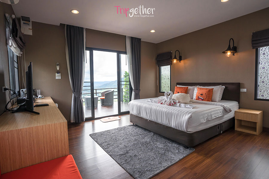 ถัดมาเป็นห้อง Deluxe Room 4 บ้านพักสำหรับ 2 ท่านมีความเป็นส่วนตัว เหมาะสำหรับคู่รักมาฮันนีมูน สวีทหวานท่ามกลางทะเลหมอก ภายในกว้างขวางพร้อมเตียงคิงไซส์หนานุ่ม บาร์กาแฟ พร้อมเครื่องกาแฟสด Nespresso ยามเช้าสามารถออกมานั่งดื่มกาแฟไปพร้อมกับบรรยากาศธรรมชาติของขุนเขาและทะเลหมอก