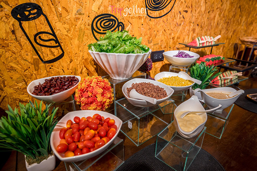 มีให้เลือกทานหลากหลายทั้ง ข้าวต้มหมู สลัดผัก ข้าวกระเพราหมู เบรคฟาสท์ ผลไม้ และครัวซองต์