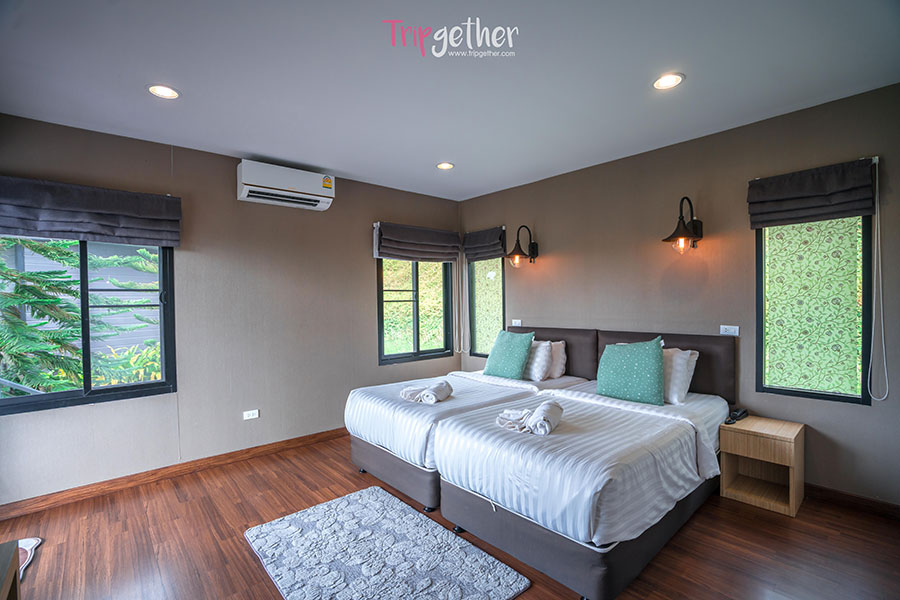 เริ่มต้นกันที่ห้อง Family Superior Room 1-2 เป็นบ้านหลังใหญ่สำหรับครอบครัว 4 ท่าน มี 2 ห้องนอน ห้องกว้างขวางสะดวกสบาย ด้วยห้องพักแบบเตียงเดี่ยว 2 เตียง และอีกห้องเป็นเตียงคิงไซส์ ภายในมีสิ่งอำนวยความสะดวกครบครัน ทั้งเครื่องปรับอากาศ บาร์กาแฟ เครื่องกาแฟสด Nespresso และอื่นๆ อีกมากมาย มีระเบียงหน้าห้องกว้างขวางเชื่อมถึงกัน ให้คุณและครอบครัวได้สัมผัสกับทะเลหมอกยามเช้าแบบใกล้แค่เอื้อม