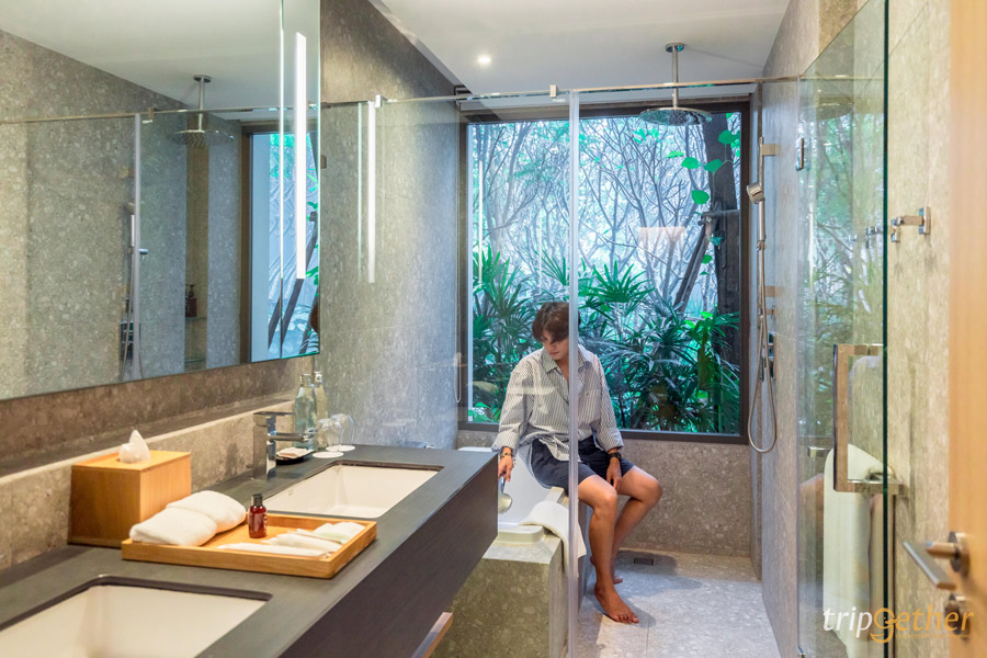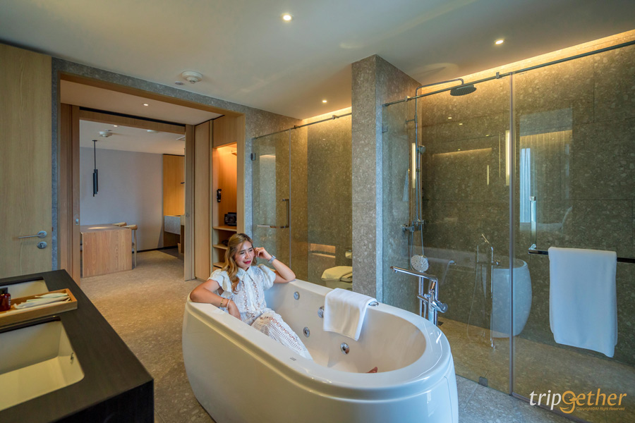 ส่วนของห้องน้ำก็พิเศษสุดๆ ด้วยขนาดที่กว้างขวางที่มีทั้งฝักบัวและอ่างอาบน้ำใช่แช่กับแบบชิลล์ๆ