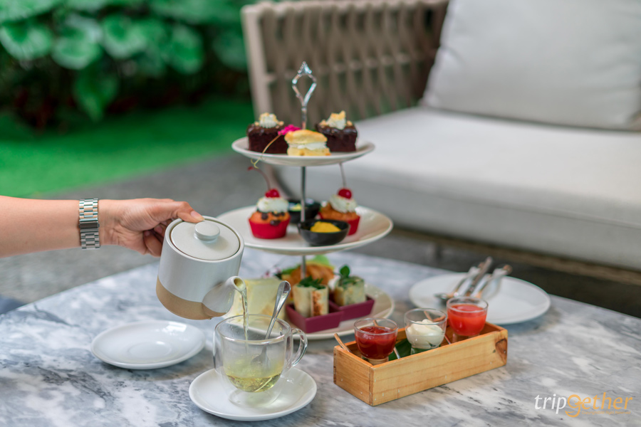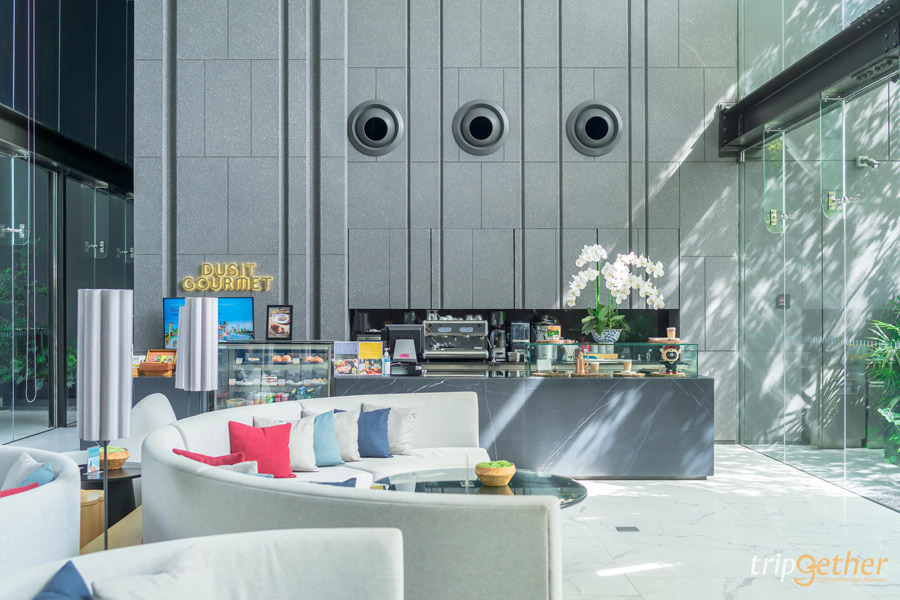 ระหว่างรอเช็คอินเราขอแนะนำ คาเฟ่เล็กๆ ฝั่งตรงข้ามล็อบบี้ Dusit Gourmet (ดุสิต กูร์เมต์) ที่เปิดให้บริการเครื่องดื่มอย่างชา กาแฟ และเบเกอรี่ ตั้งแต่เวลา 10.00 – 18.00 น. แอบกระซิบว่าใครมาถึงช่วงบ่ายแบบเราสามารถสั่ง Afternoon Tea (ราคา 540 บาท) มานั่งจิบชิลล์ๆ ชมวิวสวนกันได้ก่อนขึ้นห้องพัก เซ็ทน้ำชายามบ่ายนี้สั่งได้ตั้งแต่เวลา 13.00 – 17.00 น.