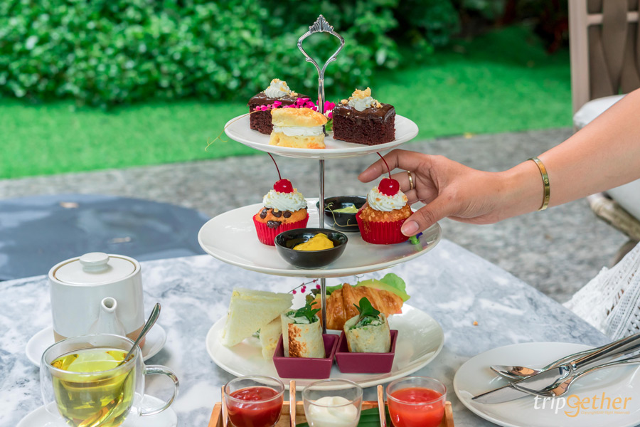 เสิร์ฟมาแบบจัดเต็ม 3 ชั้น ขนมน่ากินมาก ชาร้อนก็ดีสุดๆ