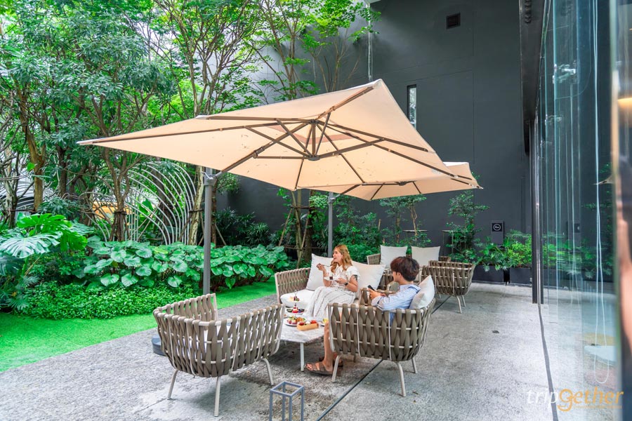 สามารถเลือกนั่งได้ทั้งแบบอินดอร์แอร์เย็นๆ หรือจะนั่งมุมเอาท์ดอร์ด้านนอกชมสวนชิลล์ๆ แบบเราก็ได้เช่นกัน