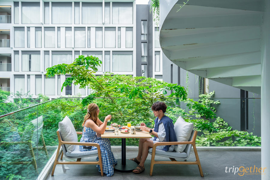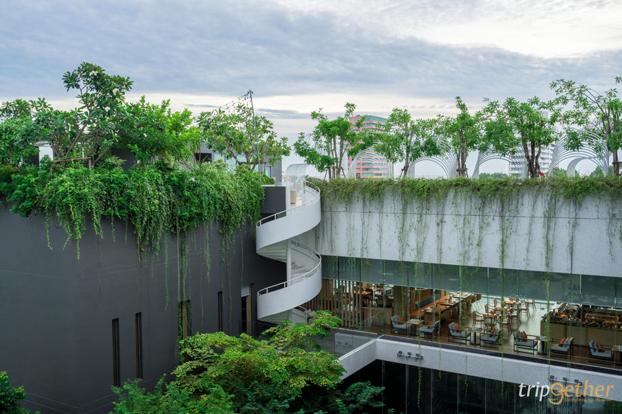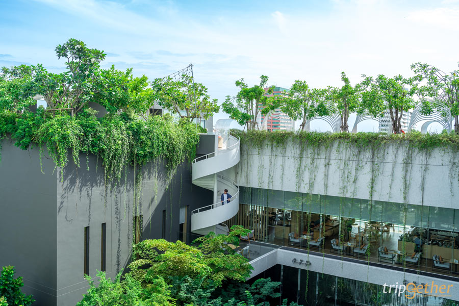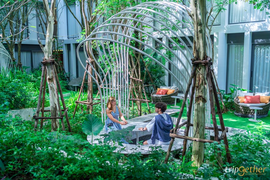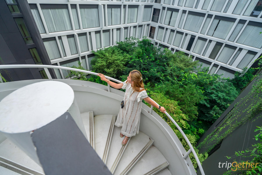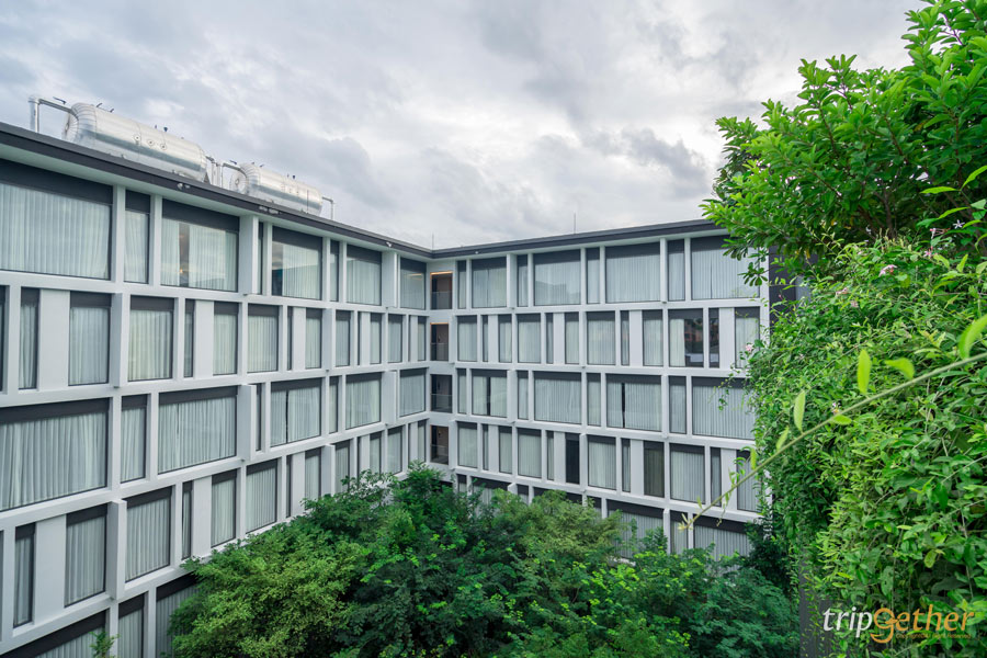 แวะถ่ายรูปเช็คอินมุมฮิตสักหนึ่งแชะก่อนจะไปดูห้องพัก จากมุมนี้สามารถมองเห็นธรรมชาติของสวนป่าไม้กลางโรงแรมได้แบบเต็มๆ