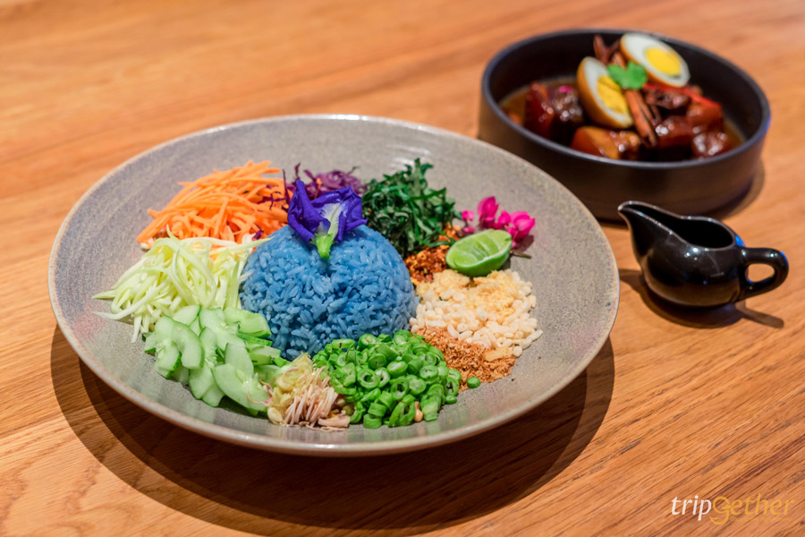 ใครอยากกินอาหารจานเดียว แนะนำให้สั่งอาหารเมนู ข้าวยำปักษ์ใต้ (ราคา 220 บาท) มาลอง ที่คาเฟ่ซอยใช้ข้าวอัญชันแบบโฮมเมดกินคู่กับเครื่องเคียงบอกเลยว่าลงตัวมาก