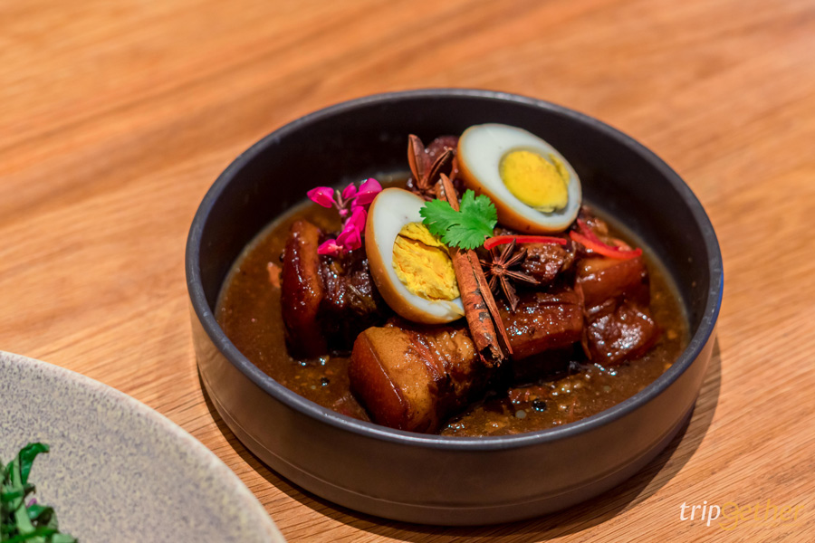 หมูฮ้อง (ราคา 260 บาท) หน้าตาคล้ายพะโล้แต่เข้มข้นและขลุกขลิกกว่าพะโล้ ใช้เวลาเคี่ยวไม่ต่ำกว่า 4 ชั่วโมง หนักเครื่องสมุนไพร หมูเป็นสามชั้นเปื่อยได้ที่ และรสชาติหวานเค็มไม่เลี่ยนจนเกินไป
