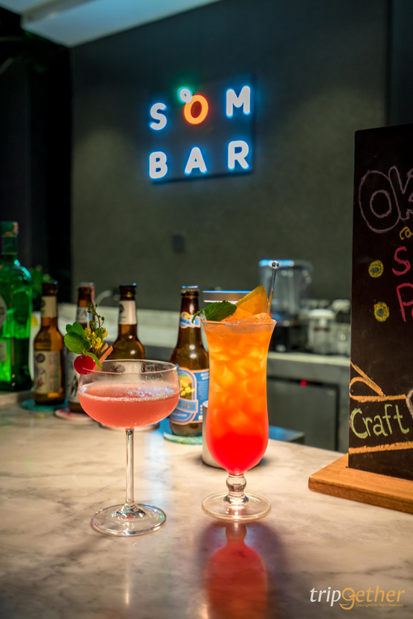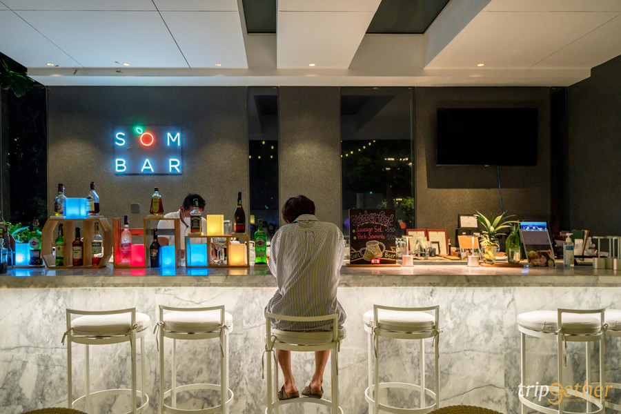อิ่มท้องกับของคาวและของหวานกันแล้ว ขอแวะไปนั่งชิลล์ ชมวิวเมืองยามค่ำคืน จิบเครื่องดื่มเบาๆ ริมสระ ที่ Som Bar (ส้มบาร์) ชั้น 6 ติดกับสระว่ายน้ำกันสักหน่อย ที่นี่มีทั้งค็อกเทล ม็อกเทล และอาหารให้เลือกสั่ง ที่นี่เปิดตั้งแต่เวลา 10.00 – 23.00 น.