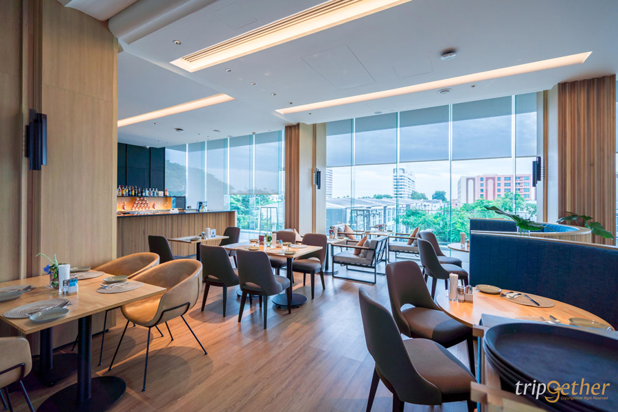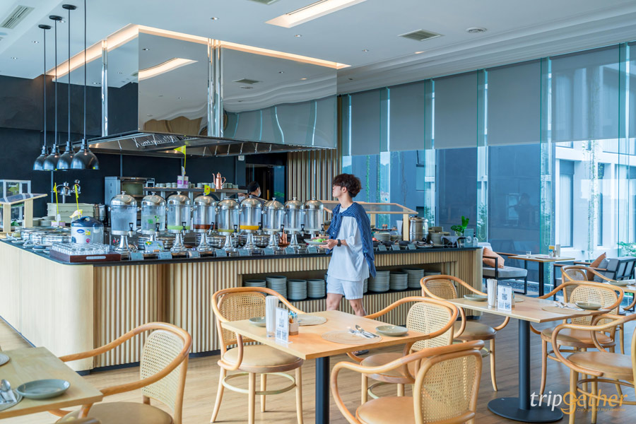 ว่ายน้ำเสร็จแล้วไปต่อกันที่มื้อเช้าที่ Café Soi ชั้น 4 ที่เดิมกับที่เรากินมื้อเย็นกันนั่นเอง เพราะที่นี่เป็นห้องอาหารสไตล์ออล์ เดย์ ไดนิ่ง เปิดให้บริการตั้งแต่อาหารมื้อเช้าไปจนดึงมื้อค่ำ เวลา 6.30 น. – 23.00 น.