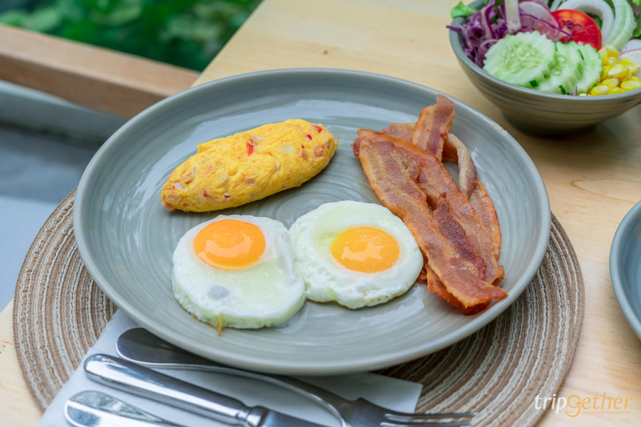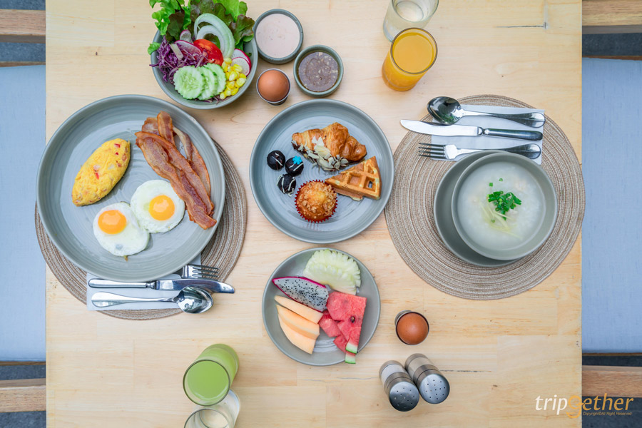 มื้อเช้าของโรงแรมเป็นอาหารอินเตอร์เนชั่นแนลแบบบุฟเฟต์ มีให้เลือกมากมายทั้งอาหารไทย ก๋วยเตี๋ยว ข้าวต้ม ขนมปัง เมนูไข่ต่างๆ เบคอน ไส้กรอก ผลไม้ อาหารเช้าซีเรียล และอื่นๆ แบบจัดเต็มมาก
