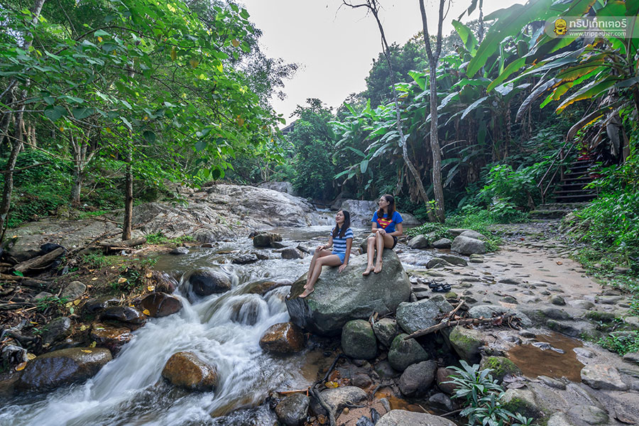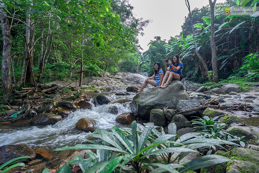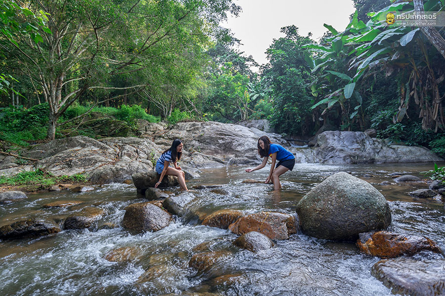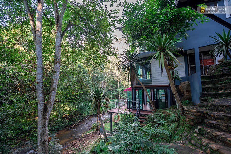 อากาศกำลังเย็นสบาย เราพากันลงมาเล่นน้ำตกตรงบริเวณหลังบ้าน อีกทั้งยังสามารถเดินลัดเลาะไปเล่นน้ำตกธารทองได้อีกด้วย ซึ่งอีกฝั่งของลำธารเป็นเนินเขาชันมีป่าไม้ปกคลุมให้ความเงียบสงบและเป็นส่วนตัว