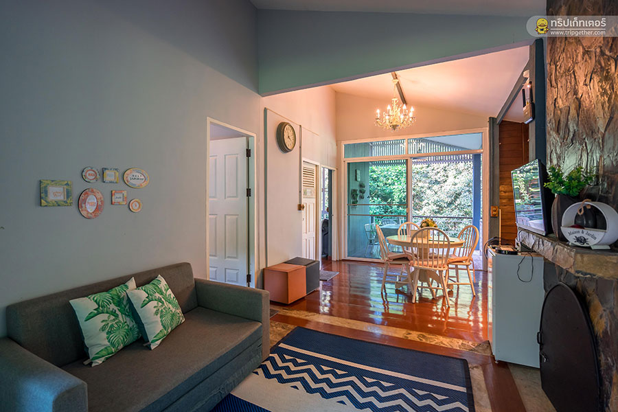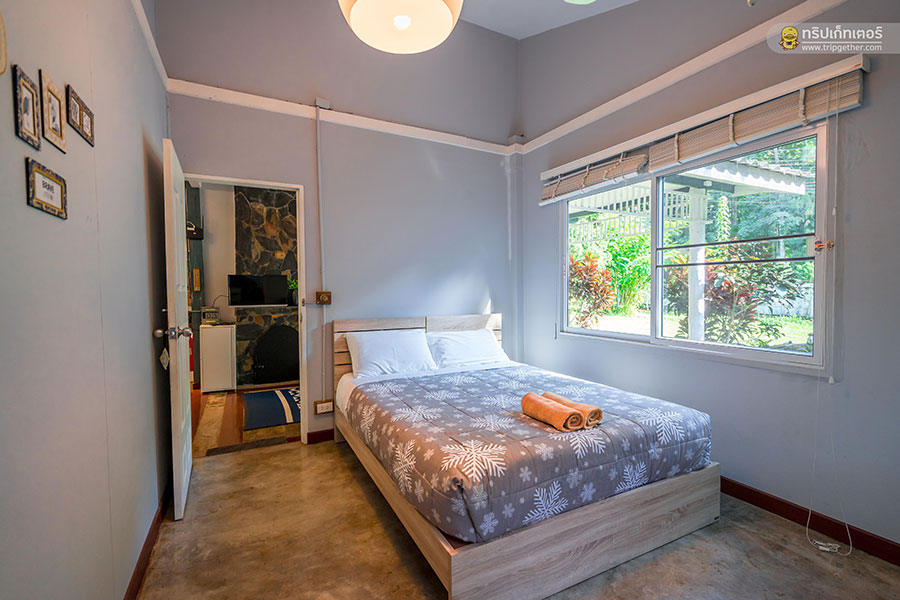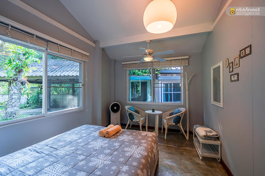Price: บ้านหลังใหญ่ 3 ห้องนอน พักได้ 6 คน (เสริมได้ คิดเพิ่ม 500 บาท/คน/รวมอาหารเช้า)