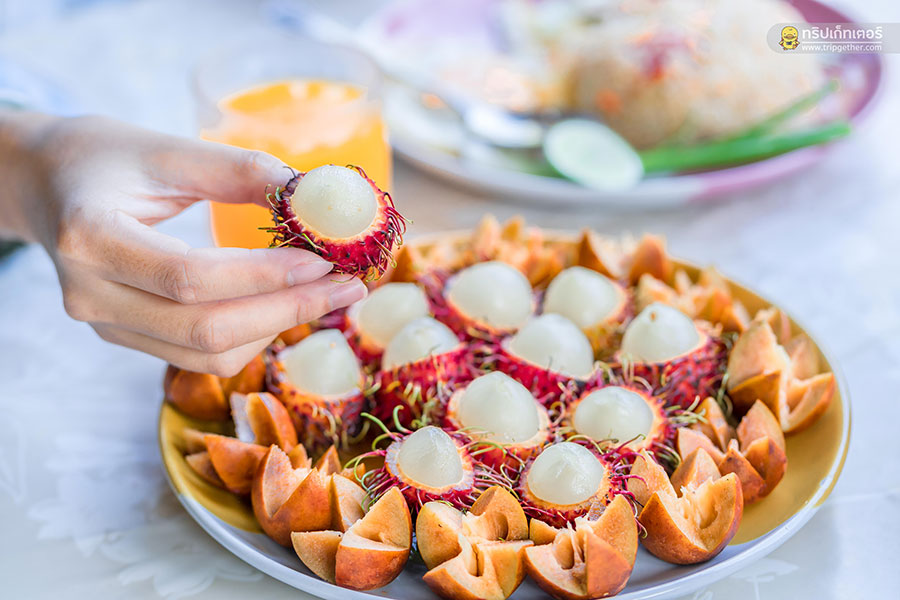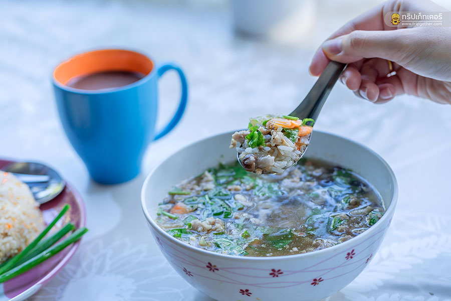 โดยอาหารเช้าของที่นี่จะเสิร์ฟให้ที่บ้านพักเวลา 8.00 น. เป็นต้นไป หรือสามารถแจ้งทางที่พักได้ว่าต้องการรับประทานอาหารเวลาไหน โดยอาหารเช้ามีให้เลือก 2 เมนูด้วยกันคือ ข้าวต้มหมูเห็ดหอมและข้าวผัดหมูไข่ดาว ซึ่งจะเสิร์ฟพร้อมผลไม้ตามฤดูกาลอย่างในช่วงที่เรามาพักก็เป็นเงาะกับละมุดหวานฉ่ำสุดๆ