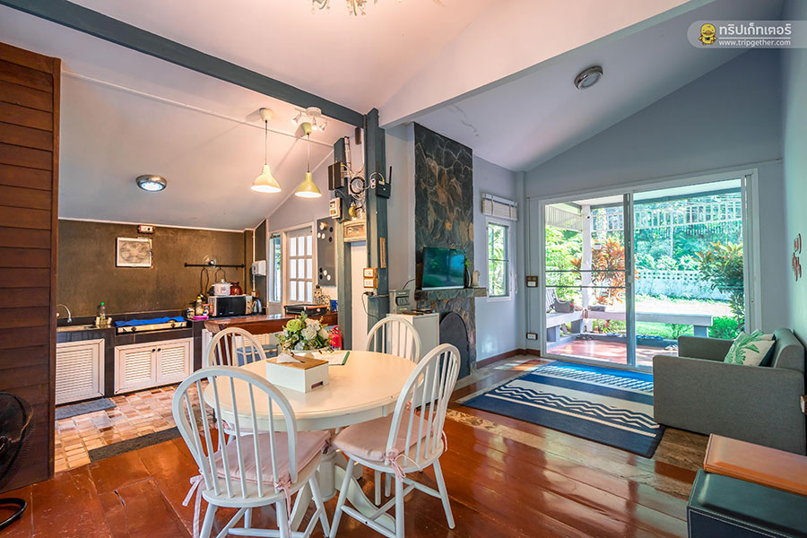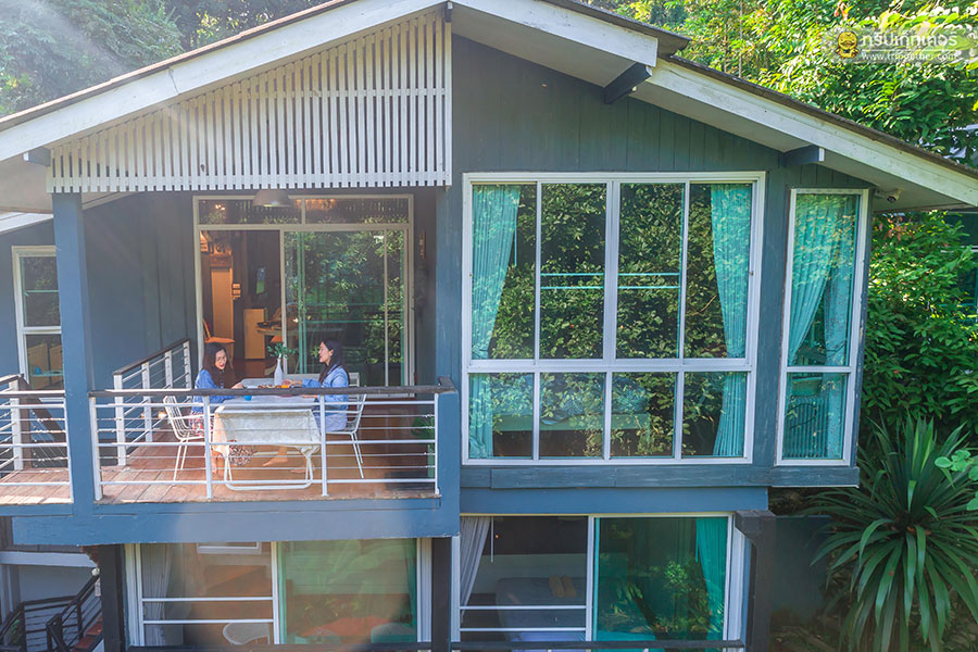 ที่พักสไตล์บ้านพักตากอากาศล้อมรอบด้วยรั้วบ้านให้ความเป็นส่วนตัว ตัวบ้านออกแบบในสไตล์โมเดิร์นผสมผสานความเป็นคอจเทจได้อย่างลงตัว ในบริเวณที่พักมีสนามหญ้าที่เป็นส่วนตัวมาพร้อมบ้านพักให้เลือก 2 หลัง โดยบ้านหลังแรกเป็นบ้านไม้หลังใหญ่ขนาด 3 ชั้น เหมาะกับครอบครัวใหญ่หรือแก๊งค์เพื่อนที่ชวนกันมาพักผ่อนสังสรรค์ดื่มด่ำบรรยากาศธรรมชาติสุดร่มรื่น และบ้านพักหลังเล็ก เหมาะสำหรับคู่รักมาเที่ยวพักผ่อนใช้ชีวิตสโลว์ไลฟ์ท่ามกลางขุนเขา