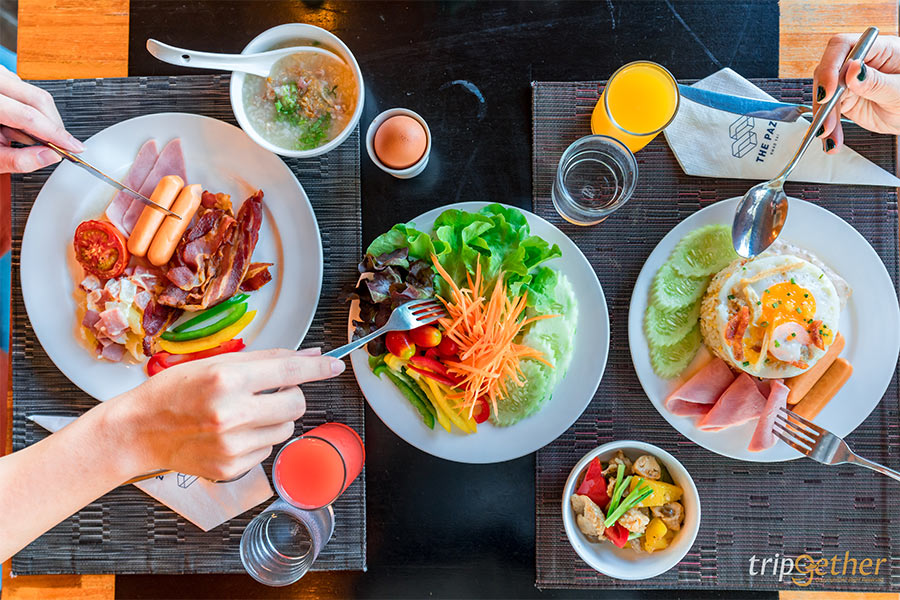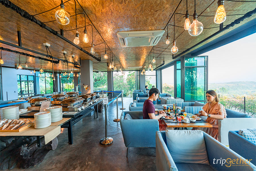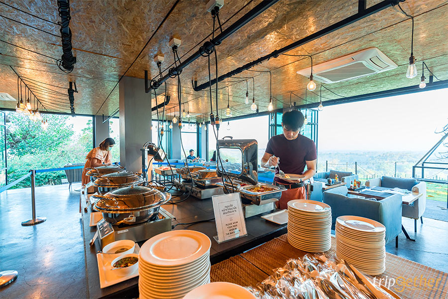 ตื่นเช้าขึ้นมาเราก็มาชาร์จพลังกันที่ Fave’ Cup คาเฟ่วิวขุนเขาที่เป็นเหมือนห้องอาหารเช้าของทางที่พัก ซึ่งอาหารเช้าของที่นี่จะมีทั้งแบบ a la carte และ แบบบุฟเฟ่ต์ มีอาหารหลากหลายให้เลือกรับประทานทั้งอาหารไทยและอาหารยุโรป