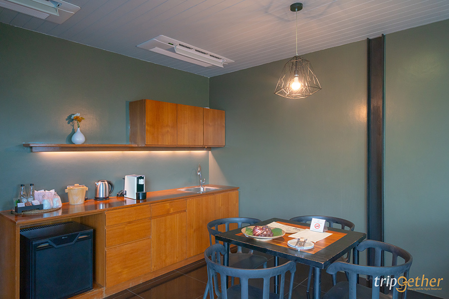 มาเริ่มกันที่ห้องแรกกับ Pool Villa ห้องพักแบบวิลล่าที่เมื่อเปิดประตูเข้าไปเราจะพบกับอ่างจากุซซี่และสระว่ายน้ำส่วนตัวพร้อมกับระเบียงกว้าง ภายในห้องมีการออกแบบให้ห้องนั่งเล่นสามารถออกเห็นวิวด้านนอกได้โดยรอบจากกระจกใสบานใหญ่ มีโต๊ะอาหารและแพนทรีเล็กๆ ที่จัดวางเอาไว้อย่างลงตัว