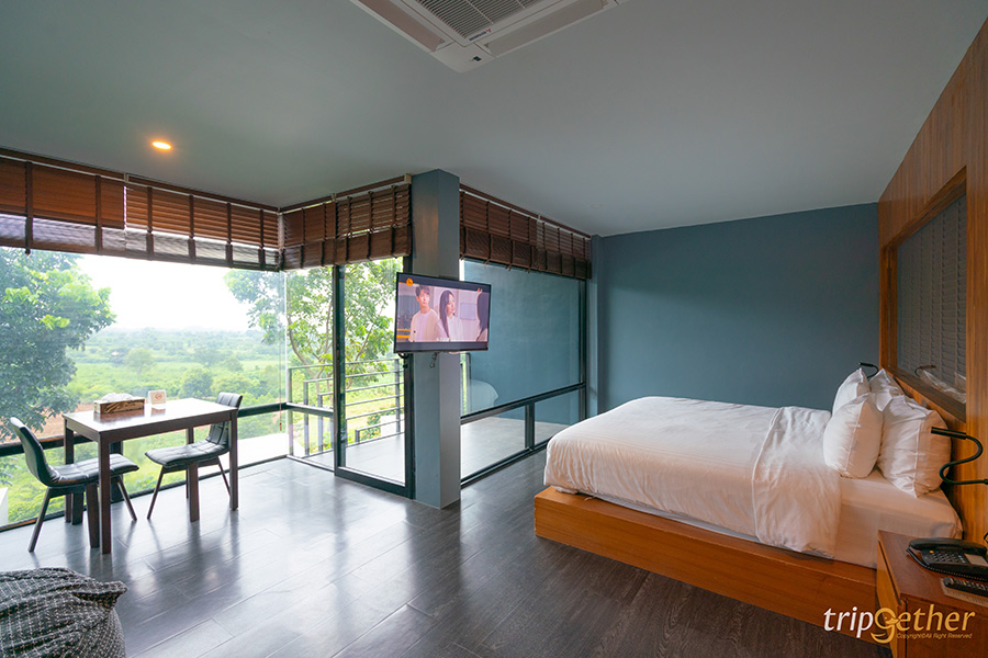 ห้องต่อไปที่เราจะพาไปดูคือห้อง Spacious Deluxe ห้องนี้เป็นห้องที่อยู่ในตัวอาคารหันหน้าออกไปทางวิวของภูเขา พื้นที่ห้องกว้างขวางพร้อมด้วยเตียง King size ที่แสนนุ่มสบาย และความพิเศษของห้องนี้อยู่ที่กระจกใสบานใหญ่ที่ทำให้เรามองวิวได้แบบพาโนรามา ไม่ว่าจะอยู่บนเตียง นั่งเล่นในส่วนไหนห้องก็สามารถมองเห็นวิวสวยๆ ได้อย่างเต็มที่