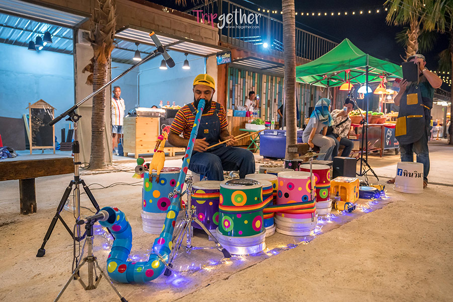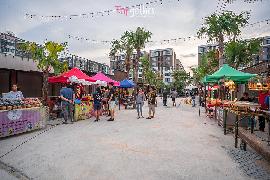 ส่วนที่นั่งทางตลาดก็จัดโซนไว้เป็นอย่างดีจะนั่งชิลล์ที่ลานกลางแจ้งแบบโอเพ่น หรือจะนั่งหลบลมหลบแดดในร่มก็มีไว้รองรับ