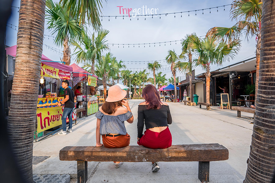 หากเดินกันจนเหนื่อยในตลาดก็มีมุมให้นั่งพักตามจุดต่างๆ