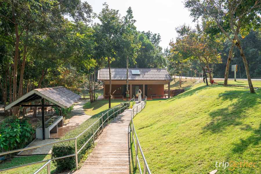 ลานจอดรถที่ติดกับถนนและมีพื้นที่กว้างขวางเพื่อนๆ คนไหนมีพรอบพะรุงพะรัง หรืออุปกรณ์กางเต็นท์ก็สะดวกต่อการขนย้ายมาก และยังมี อาคารอำนวยการ ของลานกางเต็นท์ก็มีสไตล์การตกแต่งเป็นไม้ที่เข้ากับธรรมชาติ เรียบง่ายมีความเป็นมินิมอลน่าถ่ายรูปมากครับ