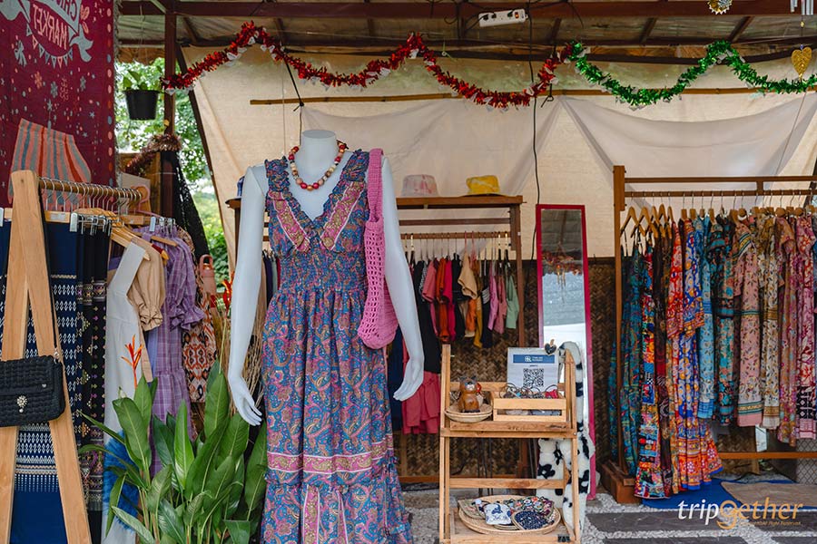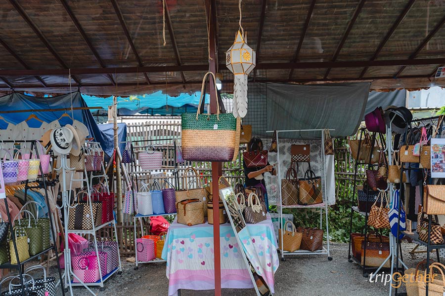 ถัดจากโซนของกินก็มาช้อปปิ้งานแฮนด์เมดกันต่อในโซนสินค้า ตรงนี้จะมีสินค้าหลากหลายชนิด ไม่ว่าจะเป็นกระเป๋าสาน หมวก เสื้อผ้า เครื่องประดับ ใครที่กำลังหาของฝากเป็นของพื้นบ้านหรืองานแฮนด์เมดที่สวยไม่ซ้ำใคร บอกเลยว่าได้ของติดไม้ติดมือกลับไปแน่นอน และที่สำคัญเป็นการอุดหนุนของชาวบ้านด้วย