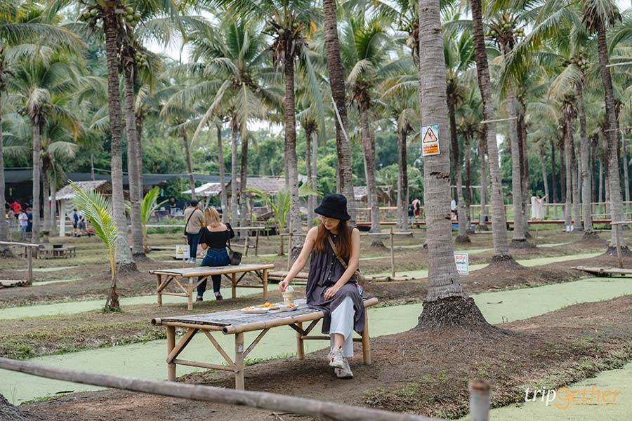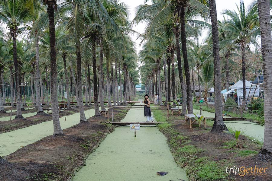 ไฮไลท์ของโซนต้นมะพร้าวคือสะพานใหญ่กลางร่องสวน มุมนี้ต้องมาถ่ายรูปเช็คอินให้ได้! ได้วิวต้นมะพร้าวสูงที่ดูแล้วสวยอลังการมาก แถมตรงนี้ยังครีเอทมุมและท่าทางได้เยอะ รวมถึงยังเป็นจุดชมวิวที่ได้เห็นภาพกว้างๆ ของสวนมะพร้าวด้วย